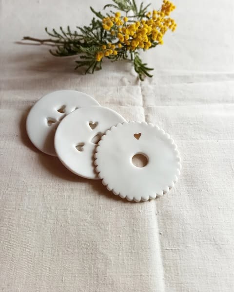 - Modèle 1 : Bord festonné, un trou central et orné d'un petit coeur peint à l'or
