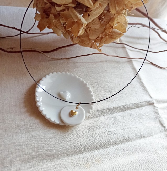 Collier ras de cou céramique, pendentif porcelaine, porcelaine blanche, collier blanc et doré, bijou minimaliste, collier or et blanc, cable acier inoxydable, ras de cou céramique, collier court, collier acier inoxydable, collier porcelaine, ras de cou porcelaine, bijou porcelaine, cadeau St Valentin, cadeau Noël, or, collier céramique fête des mères, bijou mariage, cadeau fête des mères, collier mariage
