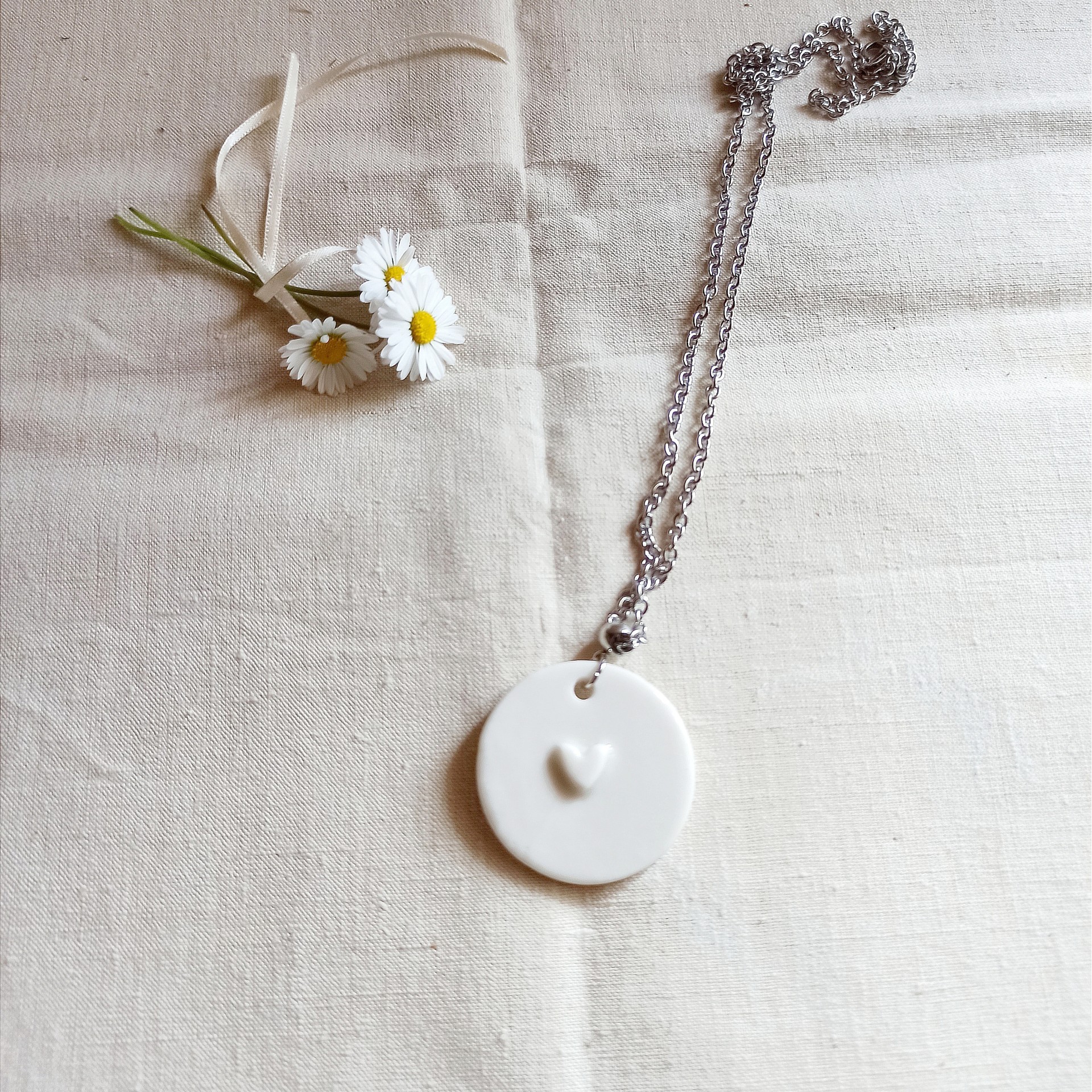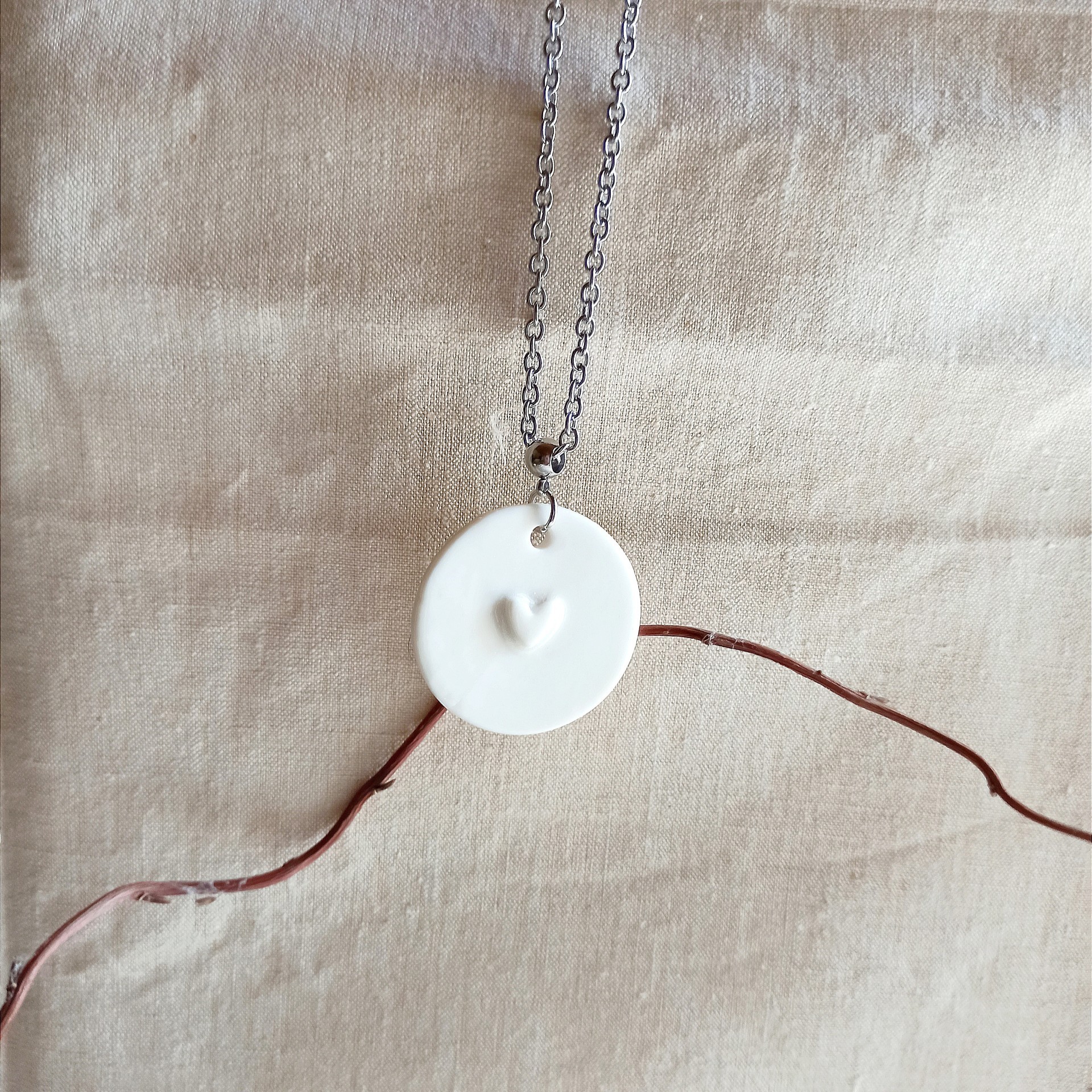 Collier mi long céramique, pendentif porcelaine, porcelaine blanche, collier blanc et argenté, bijou minimaliste, collier argenté et blanc, chaîne acier inoxydable, collier acier inoxydable, collier porcelaine, bijou porcelaine, cadeau St Valentin, cadeau Noël, collier céramique fête des mères, bijou mariage, cadeau fête des mères, collier mariage