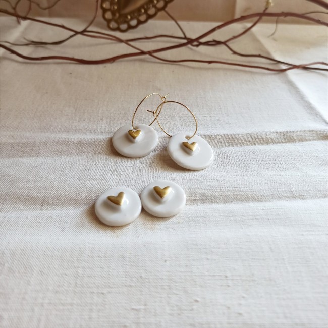 https://fibule-et-cabochon.fr/2183345-Boucles-d-oreilles-ceramique-puces-porcelaine-et-coeurs-au-choix-coeurs-blancs-ou-or